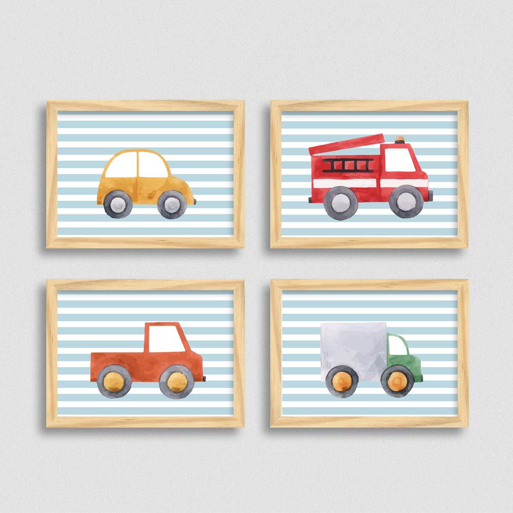Com esse tema, você pode investir nos próprios brinquedos como parte da decoração. Há, também, carrinhos em miniatura, que poderiam se transformar em uma bela coleção.
