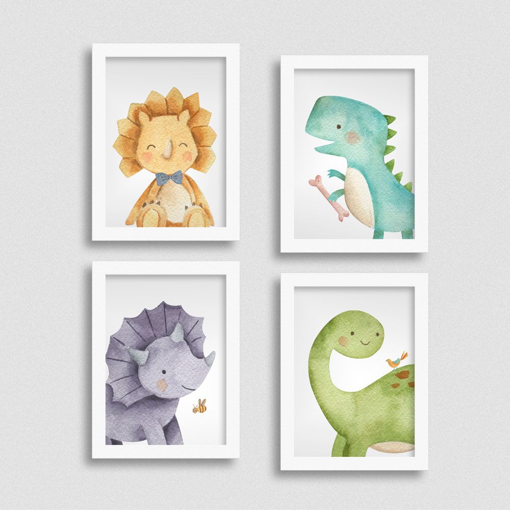 Há muitos desenhos infantis que trazem dinossauros como personagens principais, o que atrai a atenção das crianças e podem ser usados na decoração do quarto, através de brinquedos, quadros, pôsteres e adesivos.